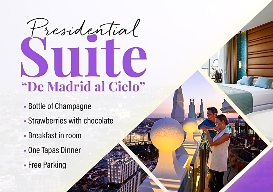 This suite features a balcony, electric kettle and seating area. Bottle of Champagne and strawberries with chocolate on arrival + Breakfast in the room + 1 time during stay Rooftop or Eden tapas dinner + Free parking A la carte dinner (Rooftop/Eden) will be offered for two people, one time during stay and includes: 2 cold tapas starters + 2 hot tapas starters + dessert + drink (beer, wine or soft drink)